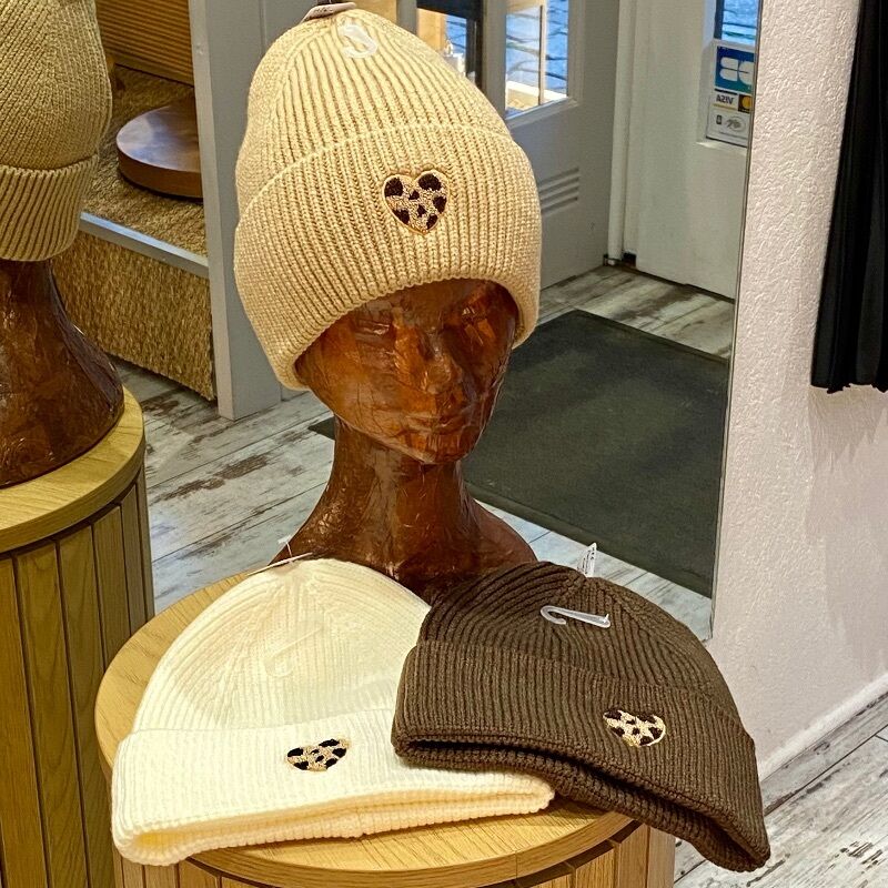 Ce bonnet se distingue par son motif coeur rempli d'un imprimé léopard placé sur le revers : une petite touche féminine et tendance qui fait toute la différence.