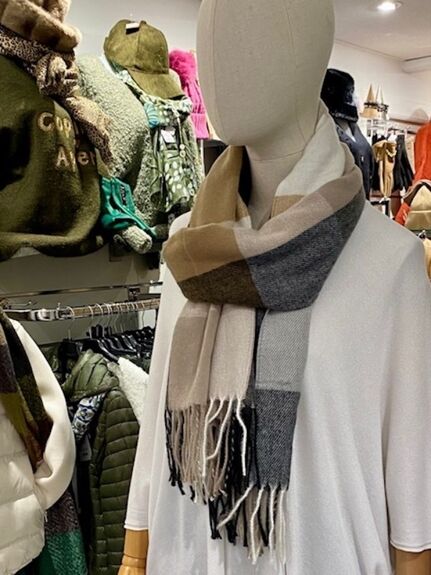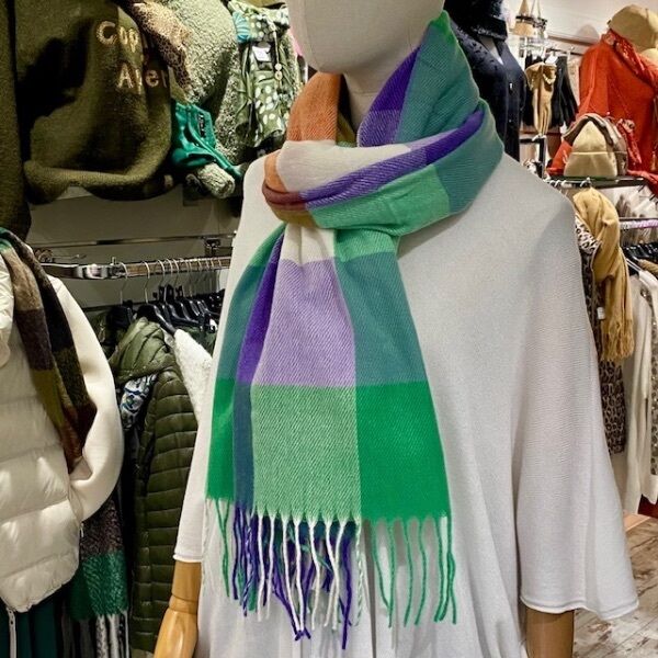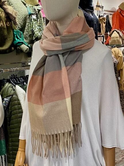 Douce, chaleureuse et facile à assortir, cette écharpe multi-carreaux séduit par son harmonie de teintes délicates.