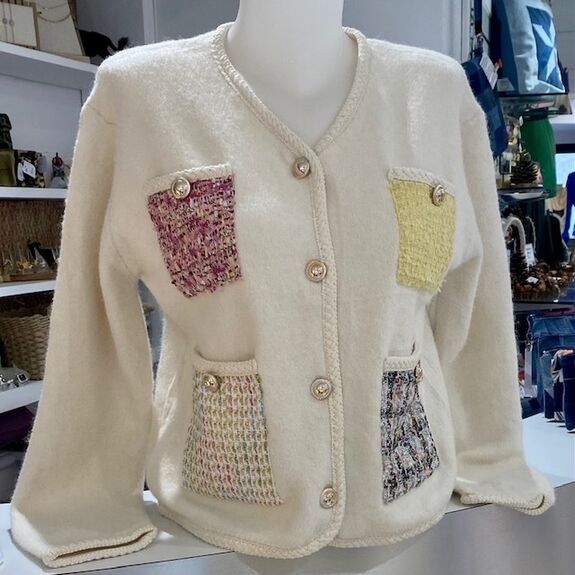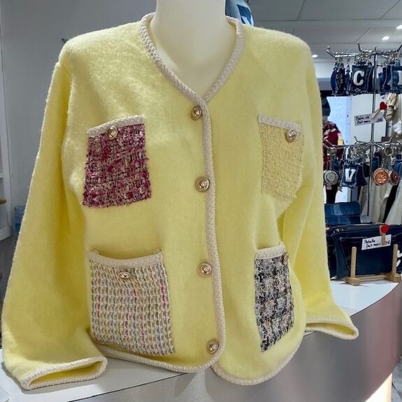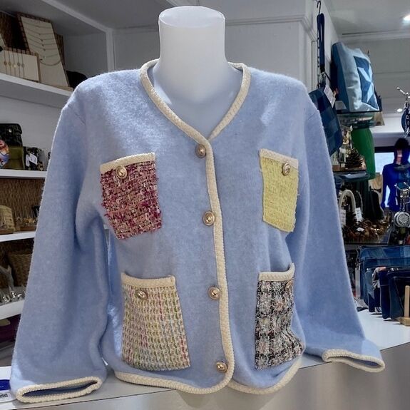 Ses quatre poches originales, aux motifs et couleurs variés, ses boutons dorés raffinés et son contour tressé apportent des détails soignés et sophistiqués. Disponible en vieux rose, bleu ciel, beige et jaune pâle, ce gilet court s’adapte aux tailles 38 au 44, et se marie facilement avec vos looks casual ou habillés.
