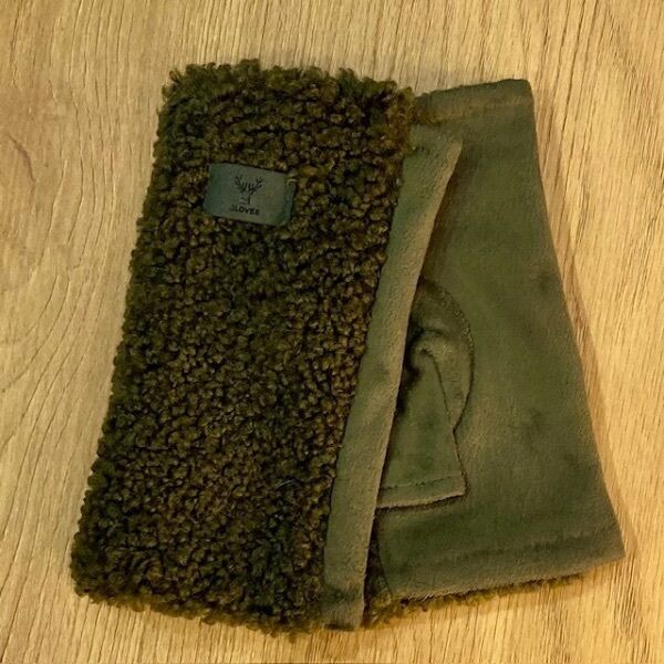 Le dessus de la main est recouvert d'une bouclette douce et moelleuse, offrant un toucher chaleureux et une allure tendance. Une petite étiquette en simili cuir, ornée d'un cerf délicatement dessiné et de l'inscription GLOVES, apporte une touche authentique et stylée.