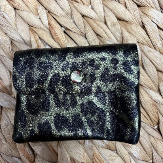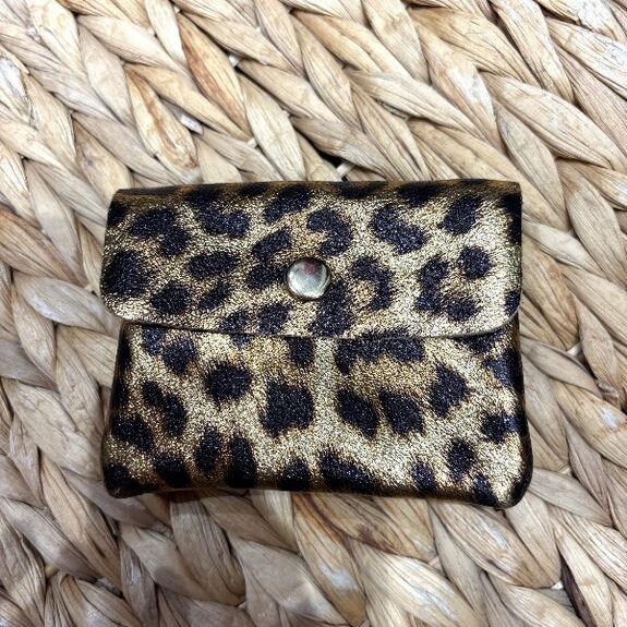 Craquez pour ce petit porte-monnaie en cuir au motif léopard, à la fois pratique et élégant. Disponible en Doré, champagne et kaki, il apporte une touche tendance à votre quotidien.