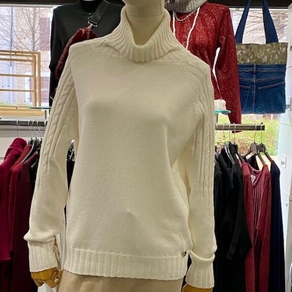 Coup de coeur assuré pour ce pull col roulé raffiné et lumineux, à la fois chic et confortable.