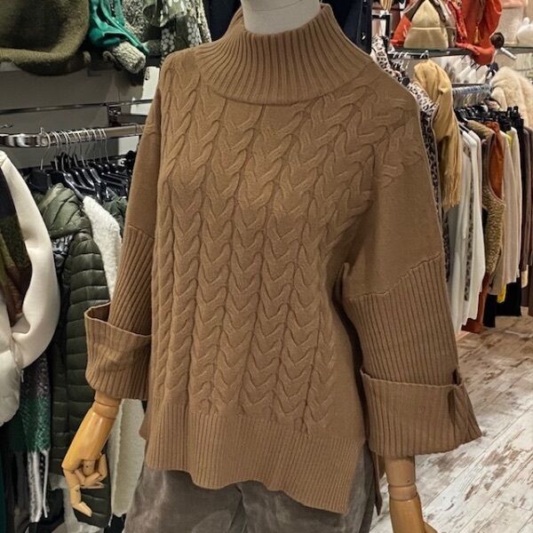 Ce pull large en maille chevrons est une pièce forte et intemporelle, idéale pour un look à la fois élégant et décontracté.